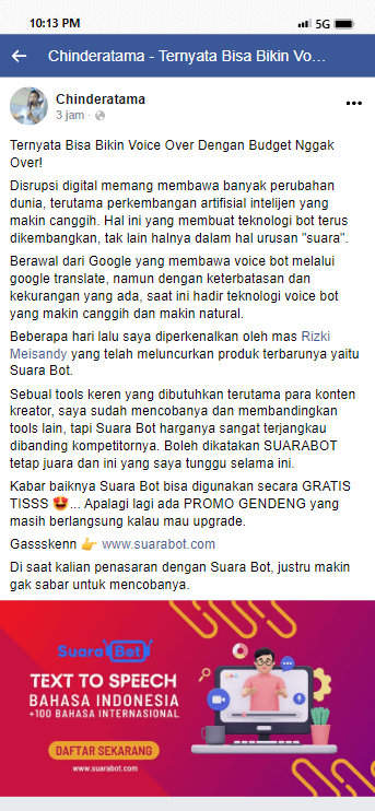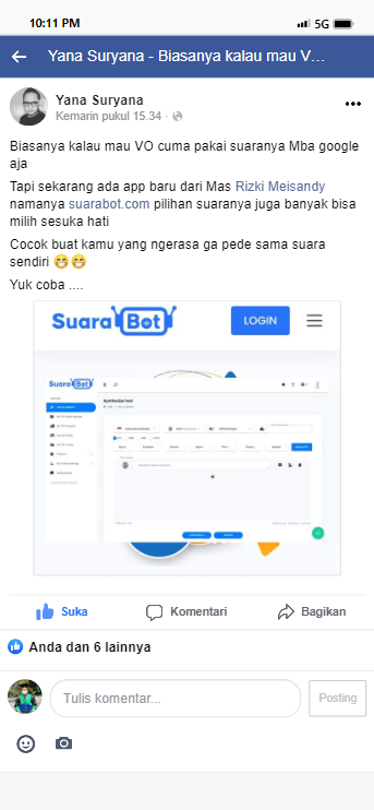Suara bot adalah aplikasi text to speech (TTS) berbasis website yang mengubah text menjadi suara manusia yang alami secara instan dan mudah.